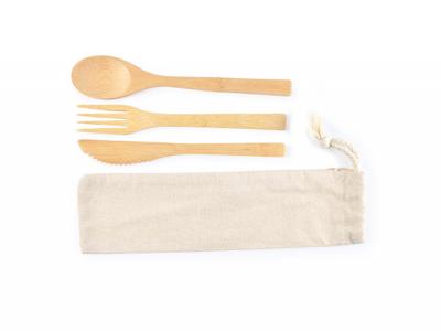 Promotional Bamboo Cutlery Sets In Calico Pouch