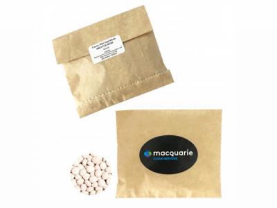 Incorporate branded eco kraft paper bags filled with mints (50g) in your next promotional campaign