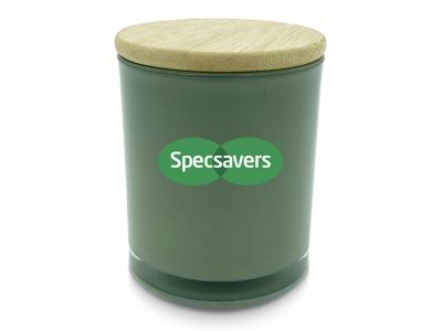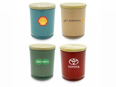 Incorporate branded coloured bamboo lid candles (med) in your next promotional campaign