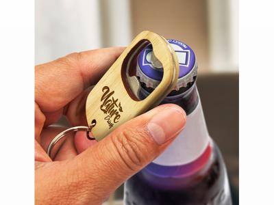 Incorporate branded keyring bottle opener (rubberwood) in your next promotional campaign