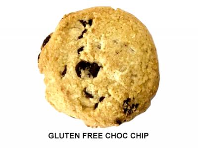 - CHOC CHIP: Gluten free flours (tapioca, besan), dairy free choc chips (20%) (sugar, cocoa liquor, cocoa butter, emulsifier [SOY lecithin] natural vanilla flavour), vegetable oil (antioxidant Vitamin E SOY), sugar, golden syrup, coconut, natural flavours, raising agent (sodium bicarbonate), salt. - Contains Soy. May contain treenuts & peanuts