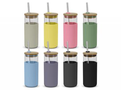 Sip in style and sustainability with our Glass Tumblers. They're more than tumblers; they're your brand's eco-conscious sip of success. These stunning custom glass tumblers are manufactured from lightweight borosilicate glass which is exceptionally strong and shatter-resistant. They feature a secure push-on natural bamboo lid with a stainless steel or silicone straw and a matching silicone seal. These customised glass tumblers have a non-slip protective silicone sleeve that prevents condensation and keeps drinks cool for longer.