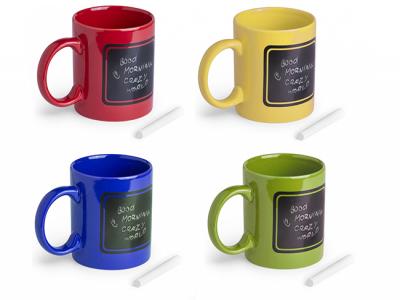 Incorporate branded colourful ceramic mugs with blackboard area (370ml) in your next promotional campaign