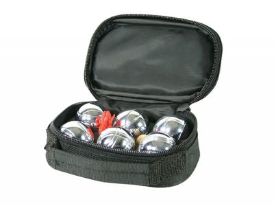 Print your logo onto these custom printed mini boules sets and use them in your next marketing campaign as a unique giveaway item! These custom printed Mini Boules Sets are a durable quality promotional product for any Summer Event. This easy to carry nylon cases contain 6 chrome balls (33mm dia), a wooden jack and a distance measurer.