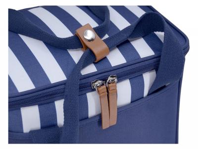 These custom printed cooler bags spread the maritime flair with their blue and white stripes. They are the perfect addition to your day out at the beach, picnic with friends or BBQ in the park. Made from stylish striped polyester, these on-trend cooler bags also feature a high quality super-insulating foam combined with ‘A-Grade’ (food safe) aluminium lining. They also come with super-soft cotton handles, leather look zip pullers & mini handle wrap as well as a handy outer slip pocket.