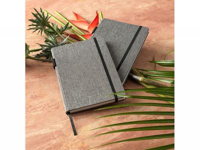 These promotional A5 size notebooks feature a cover which is made of RPET fabric and 96 sheets of 70gsm recycled lined paper. They also come with a pen loop and ribbon marker. (pen not included)