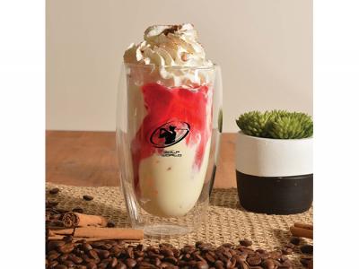 These custom branded cups are also available in a smaller size: Borosilicate Glass Cups With Optional Bamboo Lid (350ml)