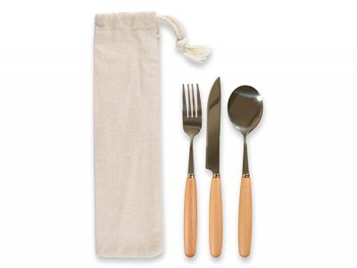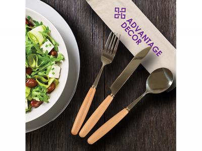Incorporate branded stainless steel cutlery sets with bamboo handles in your next promotional campaign