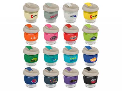 Print your logo onto these custom printed sawyer rice husk fibre glass coffee cups (250ml) or one of our other innovative glass reusable coffee cups and use them in your next marketing campaign as a unique giveaway item.
