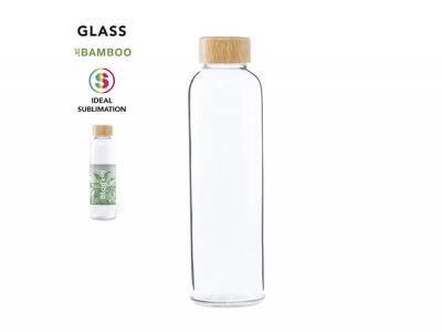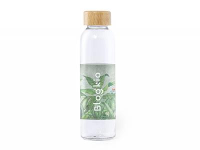 Incorporate branded full colour printed glass drink bottles with bamboo lid (500ml) in your next promotional campaign