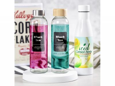Personalise your full colour printed glass drink bottles with bamboo lid (500ml) or custom design healthy drinkware for your marketing campaign.
