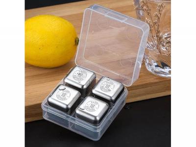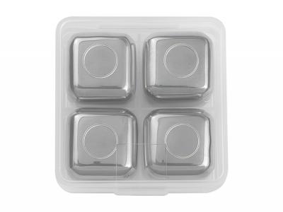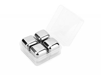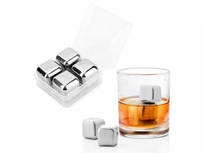 Keep your drinks cool without diluting: These Whiskey Ice Cubes are made from high grade non-toxic stainless steel, and are filled with an inner coolant that will freeze and keep your drinks chilled for longer. Their smooth edge won't scratch your glass and they are reusable. They come in a set of 4 cubes packed in a plastic gift box. The case as well as the cubes can some branded with your logo!
