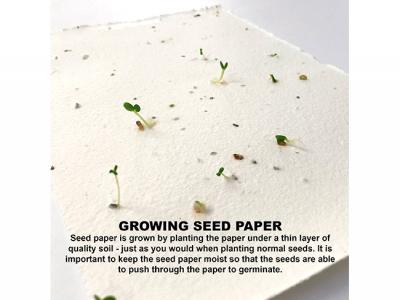 The seeded paper is biodegradable (zero-waste), non-GMO, non-invasive, and is made from recycled materials.