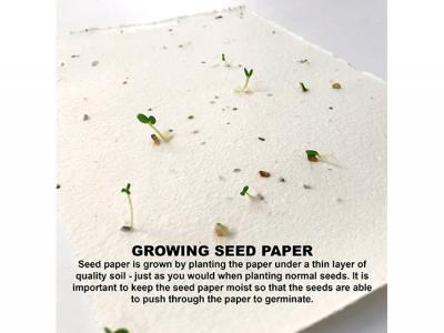 The seeded paper is biodegradable (zero-waste), non-GMO, non-invasive, and is made from recycled materials.