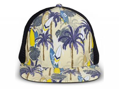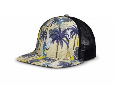 These premium structured five-panel caps are manufactured from polyester and feature a trucker style breathable mesh on the back. They have a trendy flat peak and a matching top buttom. The front panels, peak, and button are fully customisable with a stunning edge to edge full-colour print. Other features include a sweatband and an adjustable snap-back closure that allows one size to fit most people.