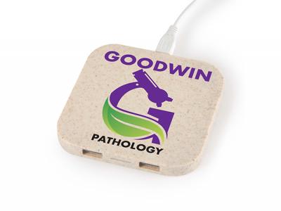 Personalise your eco wireless chargers with two usb ports or custom design environmentally friendly themed items for your marketing campaign.