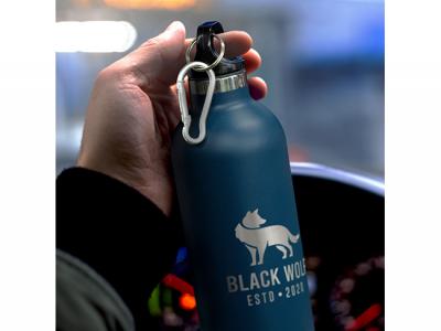 These 600ml double wall, vacuum insulated stainless steel water bottles feature a stunning powder-coated finish and will keep drinks cold for 24 hours or hot for up to 12 hours. These custom drink bottles are BPA-free and come with a secure screw-on metal lid. The lid features a carry handle and carabiner so that the bottle can easily be transported and attached to a bag.