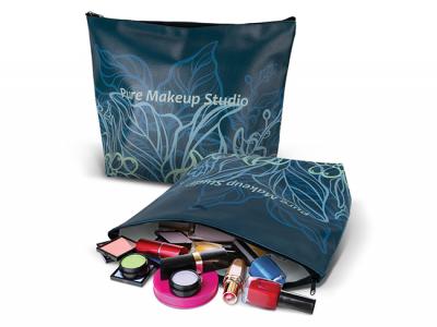 We can have your logo branded on these corporate Leather Look PU Cosmetic Bags With Gusset (Large) in Full Colour Digital Print. A setup fee of NZ$219.00 will apply to make the film.