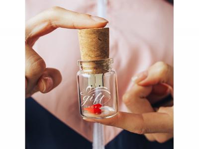 These modern flash drives are attached to a cork lid and will be protected and surrounded by a small glass bottle. A new take on of "A message in a bottle". These promotional usb sticks come with 8GB of memory and a USB 2.0 interface. Data uploading is available on request.
