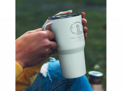 Get your logo printed onto their classic double wall, vacuum insulated stainless steel mug that have a capacity of 700ml and keep drinks cold for six hours or hot for up to thirteen hours. They also feature a tough powder coated finish and a comfortable easy-grip handle. These Custom Travel Mugs also come with a smart translucent push on lid with a secure silicone seal and a spill-resistant Tri-mode sliding closure that controls the beverage flow when open. A non-slip silicone base provides a soft landing on surfaces to avoid scratches and spills.