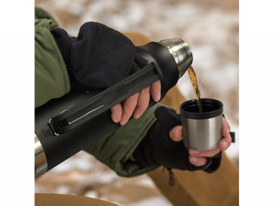 These practical 1L stainless steel, double-wall vacuum flasks have a stunning powder-coated finish that will keep drinks hot for hours. They are fitted with a screw-on cup for ease of use and a black carry handle for easy transportation.