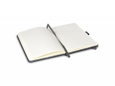 These exceptional A5 notebooks feature 70 leaves (140 pages) of 80gsm lined cream paper and a bookmark ribbon.They have a hard cover manufactured from recycled post-consumer polyester with an elastic closure and pen loop.
