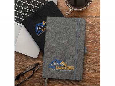 Personalise your rpet felt hard cover notebooks (a5) or custom design notepads from 50 pcs for your marketing campaign.