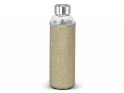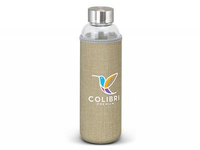 These deluxe 600ml borosilicate glass drink bottles feature an insulating soft poly jute sleeve that helps to keep drinks cool! They also have a secure screw-on stainless steel lid which can be laser engraved with your logo.