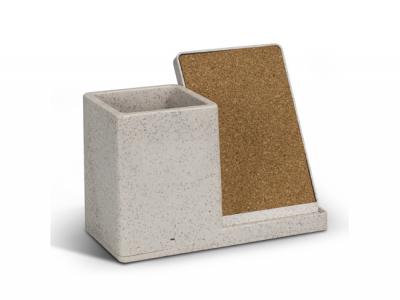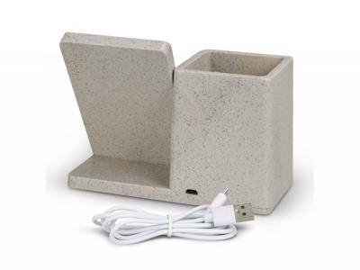 - 10W Fast wireless charger desk caddy manufactured from wheatstraw, ABS and cork.