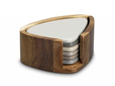 - Coasters are different shades of neutral grey and taupe