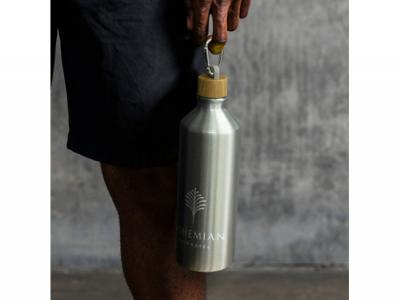 - Lightweight 750ml aluminum bottle with a natural bamboo lid