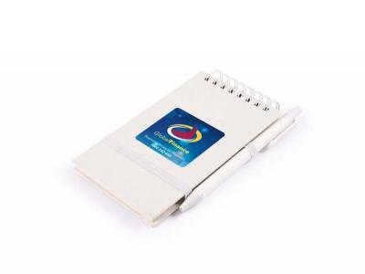 Go green with our Spiral Bound Notepad, crafted from recycled milk cartons. It offers 70 leaves (140 lined pages, 70gsm) and comes equipped with a white elastic retaining strap and a convenient pen loop. Plus, it includes a white barrel cardboard push-button pen with black ink for all your note-taking needs.