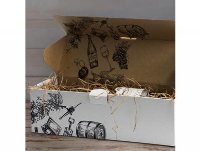 A high-quality custom presentation box, expertly crafted from durable 1.5mm e-flute corrugated cardboard, ensuring reliable protection during shipping. This box is specifically designed to accommodate a magnum-sized wine bottle, making it an ideal choice for both gifting and strengthening brand recognition. It features a convenient hinged lid and a tuck-and-tongue closure. Selected panels of the box can be personalized with digital print to showcase your brand.