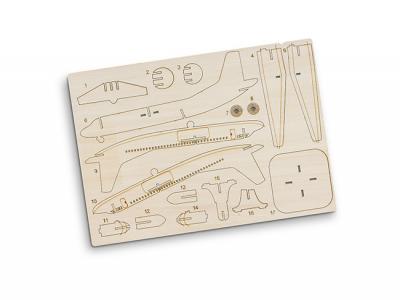 Embark on a journey of imagination and artistry with the Basswood Wooden Model Jet Plane. Our model jet plane is a testament to creativity, precision, and fun. Meticulously laser-cut from an A4 sheet of Basswood, a lightweight and durable wood ideally suited for crafting, this model is designed to unleash the inner child in everyone. The clever interlocking design ensures that the pieces effortlessly fit together, requiring no tools for assembly. Packaged in a customizable cardboard sleeve complete with assembly instructions, this makes for a captivating promotional product or a delightful gift suitable for both adults and children. You can personalize the natural Basswood with your brand, or infuse your brand's colours and identity into our default digital template, bringing your brand to vibrant life.