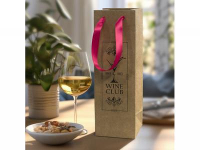 Our custom paper carry bags are great for wine and champagne gifting or presentation. Crafted from 180gsm FSC-certified materials, this bag is adorned with coloured ribbon handles for an elegant touch. The gusset and top edge are thoughtfully reinforced for added strength. This bag is the perfect choice for making your wine and champagne gifts or presentations even more special.