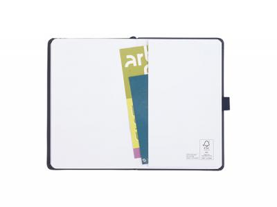 A custom notebook crafted with 30% repurposed pineapple components. This eco-friendly custom notebook features a hardcover, colour-matching elastic closure, pen loop, and ribbon page marker. With 80 sheets of white-lined FSC®-certified paper and a convenient back document pocket, it's the perfect blend of style and sustainability.