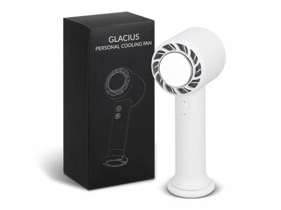 Stay cool on-the-go with our high-performance cooling fan. With ultra-quiet operation and three speed settings, This custom fan includes a cooling plate for refreshing airflow on hot days. The fold-out carabiner allows for easy attachment to bags, making this custom fan a convenient travel companion. Plus, it doubles as a stand for desks or tables when folded away. This Custom Hand Held Fans boasts a 2200mAh battery and recharges effortlessly via Type-C cable. Presented in a sleek black gift box