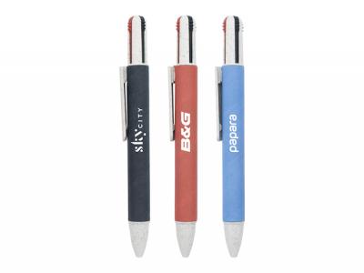This 4-in-1 branded pen, crafted from paper and wheat straw, is an eco-friendly choice for everyday use. Featuring four ink colours—green, red, blue, and black— this branded pen offers versatility and convenience in one sustainable tool. Perfect for those who value both functionality and environmental responsibility.