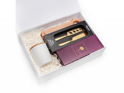 Create memorable moments with our custom branded luxury gift sets. Perfect for corporate gifts, client appreciation, and promotional merchandise, this premium entertaining collection combines an acacia wood cheeseboard, gold cheese knives, vanilla candle, and patchouli reed diffuser in elegant presentation packaging.