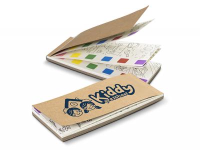 Looking for branded colouring sets that people actually use? Each page is pre-printed and ready to paint—just wet the included mini brush to activate the six watercolour paint squares, then tear off and share. Get in touch for bulk order options for your next giveaway or corporate gifts campaign.