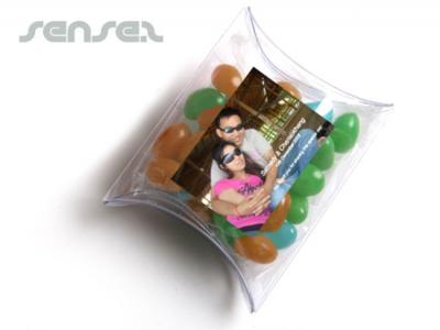 Print your logo onto these custom printed pillow boxes filled with candy (20g) or one of our other innovative jellys and use them in your next marketing campaign as a unique giveaway item.