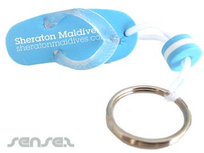 Custom Thong keyring made of EVA foam sole and rubber band - looks very cute and real These Custom Floating keyrings are ideal for beach related promotions or Australiana promotions. Because this custom keyring type is a floating foam keyring, it will be ideal for the beach or other ocean related promos, as it will help keys to float in case they fall into the water. The promotional beach thong-shaped keyring is ideal for beach related promotions. Custom thong keyrings float in water and makes a practical travel related promotional gift.