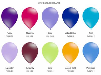 Colours: red, pink, orange, green, blue, light blue, white, yellow, lavender, black, peach, periwinkle blue, ultramarine blue, teal blue, fuschia, Aussie gold, lime green balloons.