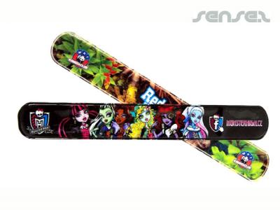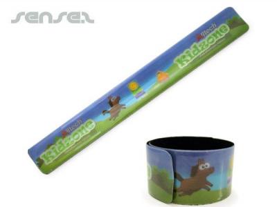 Custom printed Slapband in full colour process print. Great for kids promos and product promotions as these full colour process printed slap bands give you all creative possibilities. The Slap bands are made of Reflective PVC Vinyl with an inner Steel band + Velvet finish on the inside of the band for comfort. Slap bands are ideal give aways for event promotions- the slap on easily and are fun to wear. We can produce the Slap bands in either reflective or non reflective PVC material. (We can also make the slap bands in a larger size of 33x3cm at extra cost)