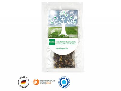 Choose your favourite variety of tea and tailor the label individually to your customers. This is how relaxed advertising works! Each tea bag is made of a nylon bag and you can choose from following tea flavours: Feel Relaxed - herbal tea, Passion - green tea, English Breakfast - black tea, Fruit Tea - raspberry flavoured