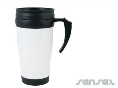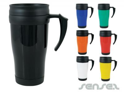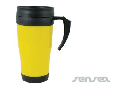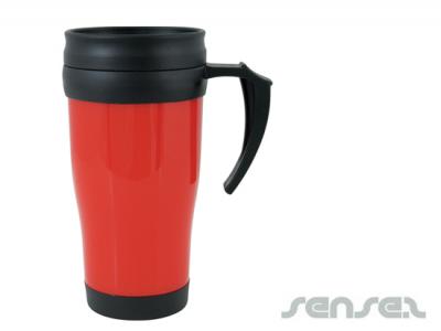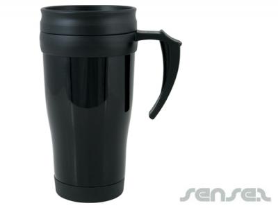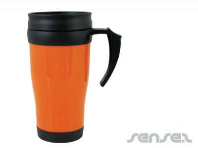 Comes in various colours: blue, red, green, orange, black, yellow or white. Double walled plastic construction. Splash proof lid. Will keep beverages warm and secure whilst traveling. Ideal for office merchandise and winter events they're handy and they can be displayed on your customer's desks, which means your brand gets the maximum exposure!