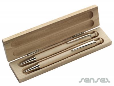 These Maplewood pen sets consist of a ballpen with blue ink a pencil and a matching beechwood presentation box. Ideal for an environmental marketing event or a an Eco friendly company wanting to produce some marketing merchandise. This quality pen and pencil set is available from 50pcs.