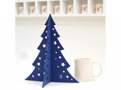 These sturdy custom made Felt Christmas Trees are made from 5mm FELT. Each Set consists of 2 laser-cut FELT sheets that can be customized to incorporate your logo and design: Our design for sale or design your own. Item is laser cut only, but we can quote to add a small logo at corner by screen-printing. (Extra charges may apply depending on the complexity)