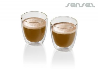 These 2 piece 200ml double wall coffee glass sets are insulating and help keep your drinks hot. The elegant and contemporary design is easy to use and can be used with any beverage, from coffee to cocktails. A very similar style to the Bodum brand but but at a more economical price point. The glass sets are supplied in black gift boxes. Great for cafe, bar or restaurant promotions! Custom branded glasses give your brand the opportunity to be displayed on your customers desks for hours!
