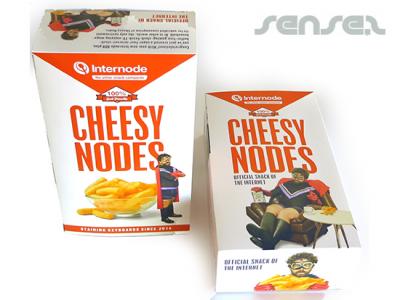 Incorporate branded cheezles in printed boxes in your next promotional campaign